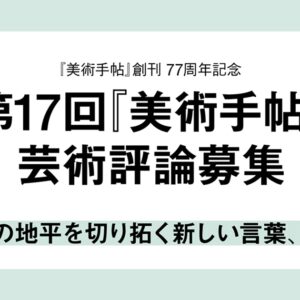 - 第17回『美術手帖』芸術評論募集1954 年に月刊『美術批評』の「新人評論募集」として創設。第 2 回以降は『みづゑ』『美術手帖』『国際建築』… 続きを読む: 第17回『美術手帖』芸術評論募集