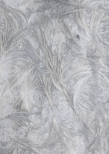 本展は[propagate]と題した霜の結晶の痕跡を塗料によって定着する作品シリーズで構成するものです。この手法の制作は2017年の年始頃、比叡山麓の作業場の屋外で塗装作業をしたまま片付けを忘れ、ひと晩野晒しになったベニヤ板に残っていた痕跡を手掛かりに始まりました。以来、冬が来る度に手探りのトライアンドエラーを繰り返し今日に至ります。蓄積される経験や緩やかな統計によって制作環境の解像度が上がった一方、それでもなお気温や湿度などの数値では捉えきれない微視的な何かの存在に疑いの余地はなく、雄弁な結晶の文様も、私たちの周囲をとりとめもなく満たすもののほんの一端でしかないのです。移ろいゆく自然現象を相手にしていると語りつつも、その実、変化してきたのは私自身の思考や皮膚感覚だったのでしょう。近年は、紙や画布などの地面にそっと寄り添うような支持体が肌に馴染むように感じています。そうした作品の中から、25-26シーズンの新作を展示します。