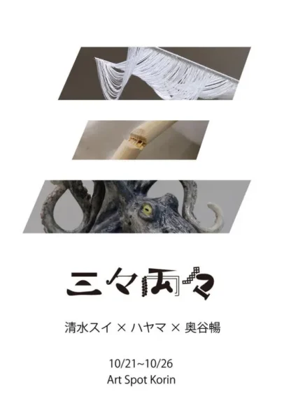 展示会や作品のコンセプト:本展「三々両々」は、京都精華大学立体専攻 3 回生 3 名によるグループ展である。