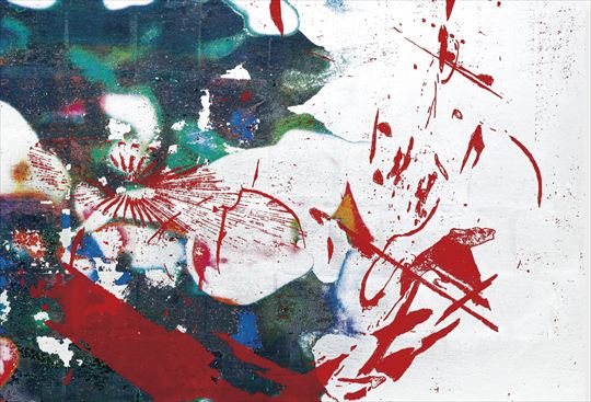本銀箔を支持体に用い、その上に記憶のイメージを刷っている。