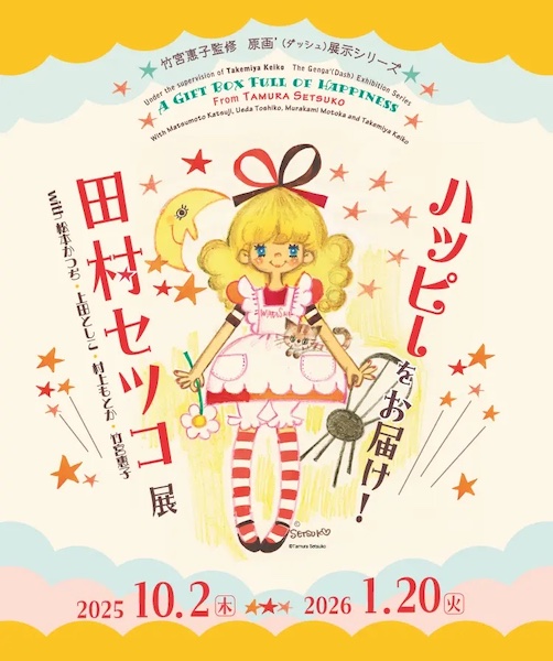 本展では、新規で制作した田村セツコの原画’(ダッシュ)を初公開するとともに、田村セツコと縁の深い原画’(ダッシュ)参加作家である松本かつぢ、上田としこ、村上もとか、そして、監修者の竹宮惠子の原画’(ダッシュ)をお蔵出しします。