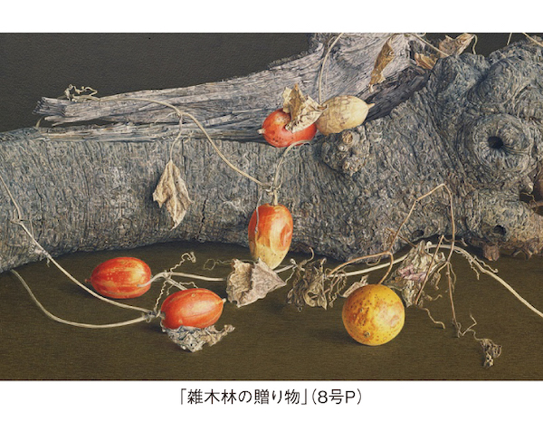 安永元典先生は、1949年福岡県に生まれ、京都市立芸術大学西洋画科を卒業されました。その後個展を中心に、身近なモチーフと真摯に向き合い、会話するような制作姿勢で独自のリアリズムを追求した作品を発表しておられます。今展では、みずみずしい果物や庭先に咲いた可憐な花など、鋭い洞察力と精緻な表現で描かれた作品20余点を展観します。