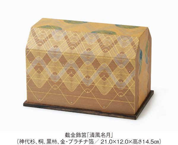 村上茂子先生は、1949年京都市にお生まれになり、京都府立大学短期大学部を卒業後、截金師 北村起祥氏に師事されました。仏像の荘厳を志して截金の道へ進まれた先生は、工芸の世界にも、その煌めきの美を表現してこられました。高島屋初個展となる今展では、太陽や月の光、霧といった自然界の気配を截金で表現した代表作である飾筥を中心に、截金を施した仏像などもあわせ発表いたします。