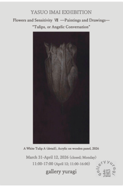 今回の個展では、チューリップを、そして、春に咲く花々を描いた作品を展示します。ちょうど、哲学の道の桜が美しいこの時期に会をさせていただけること、とても感謝をしています。ご高覧頂けましたら幸いに思います。